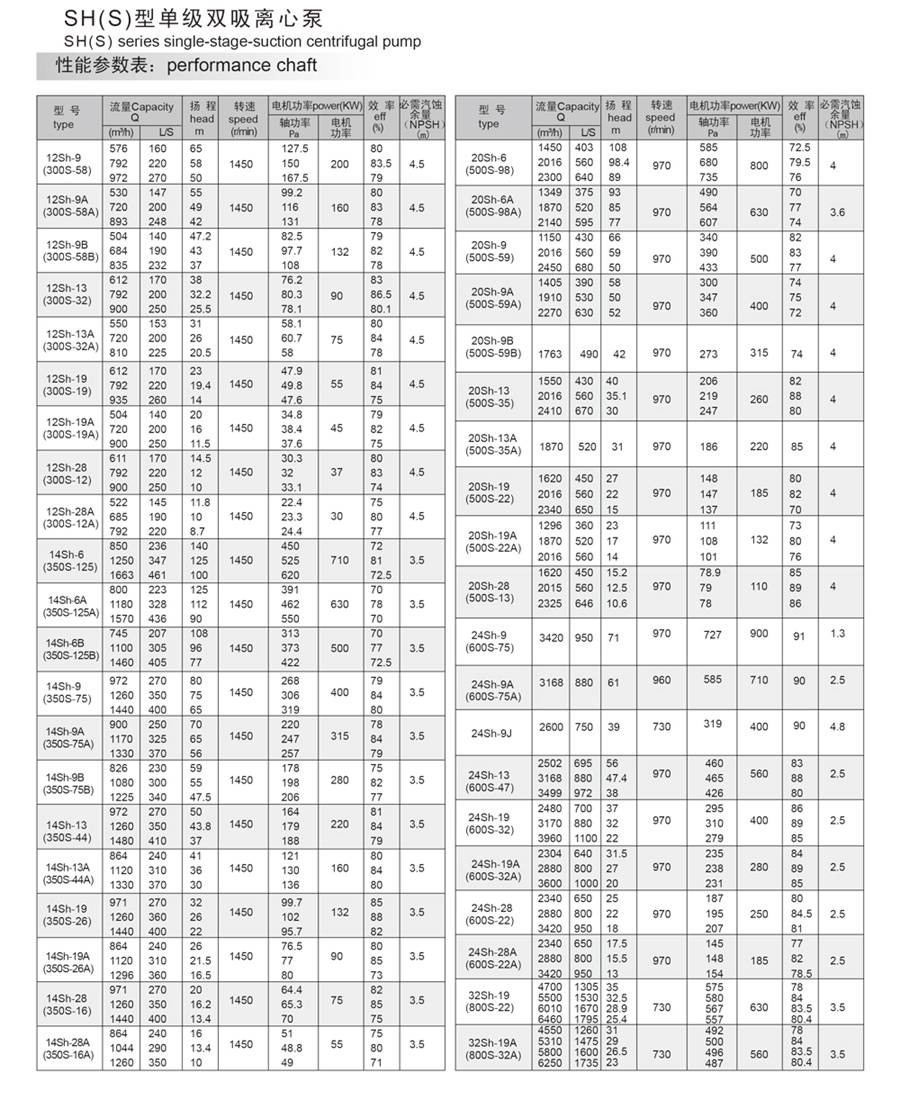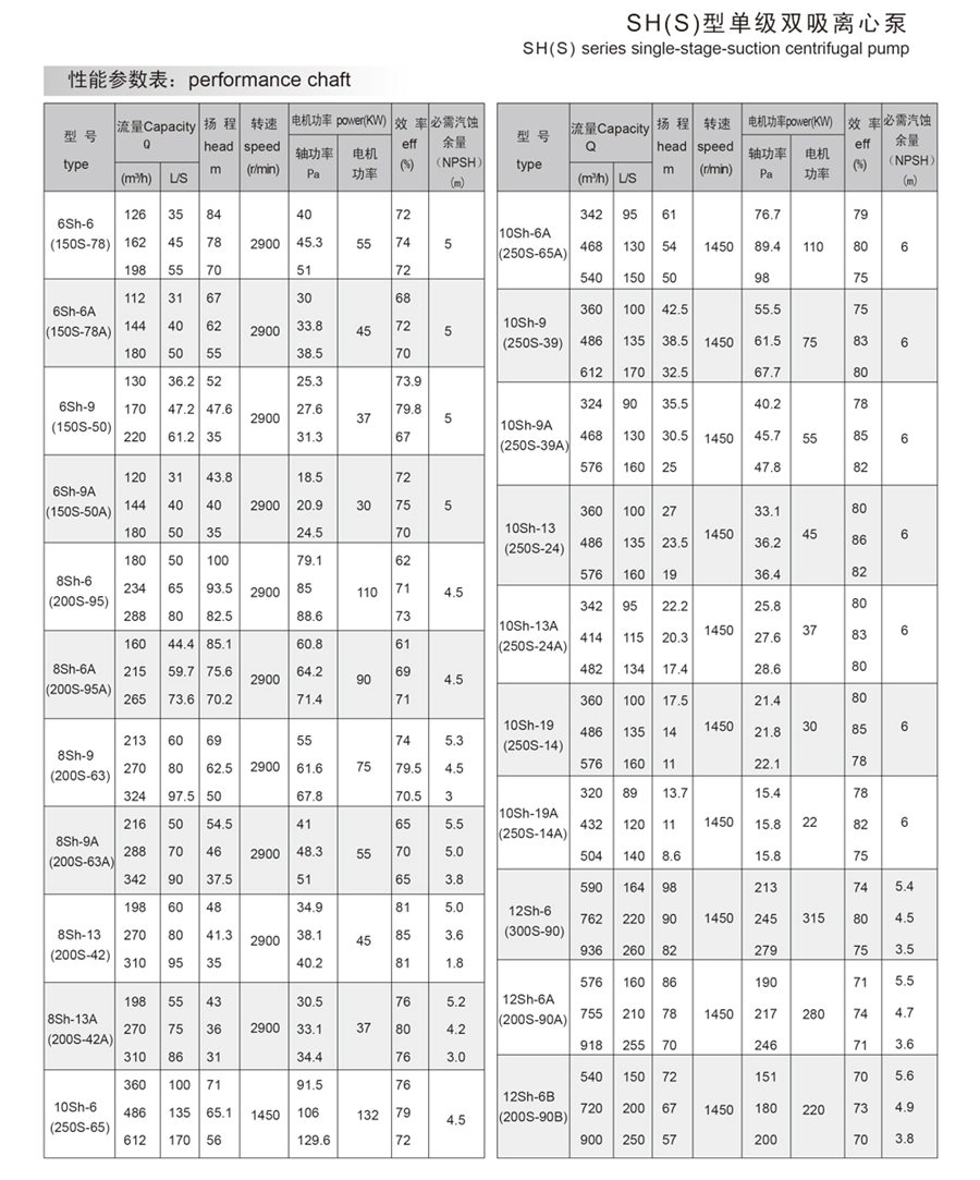 SH(S)型單級多雙吸離心泵